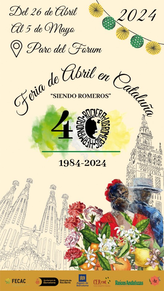 Fotografia 2. Cartell de l’Hermandad Nuestra Señora del Rocío Los Romeros de la Fira d'Abril 2024, any en què celebren el seu 40 aniversari.