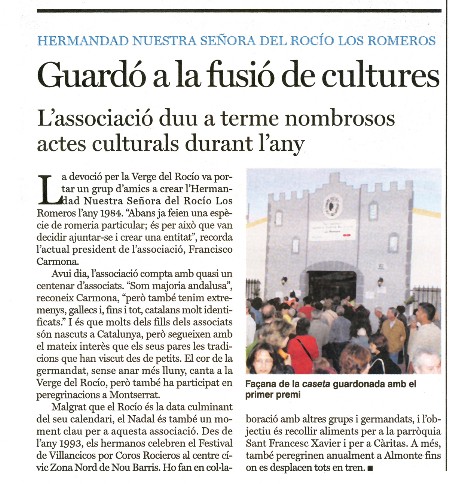 L’Hermandad Nuestra Señora del Rocío Los Romeros ha protagonitzat diversos articles en la revista “Raíces