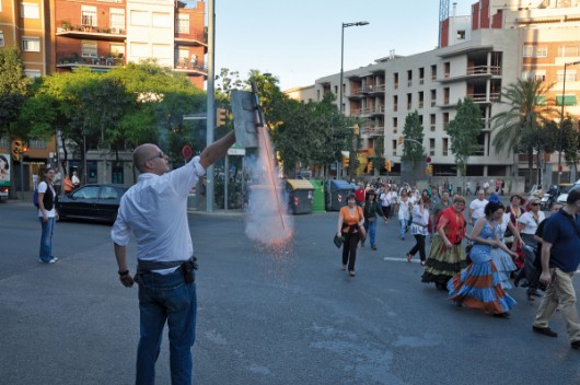 Fotografía 2. Un cohete anuncia la salida de la Hdad. Ntra. Sra. del Rocío Los Romeros. El cambio de normativa municipal impide en la actualidad poder lanzar dicha señal de júbilo.